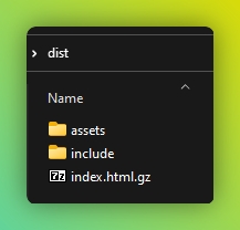 Note: If the result doesn't work when uploaded it might be that your web server does not support serving gzipped files. You have two options to fix the problem: Option 1: You can try enabling gzip compression on your server using a htaccess file! Option 2: You can turn gzip compression off in the build settings at File/Build Window and selecting the Needle Engine platform.