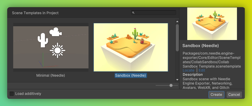 :::tip Custom Templates Create your own templates: Project View > Create > Needle Engine > Project Template
